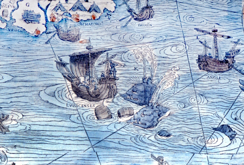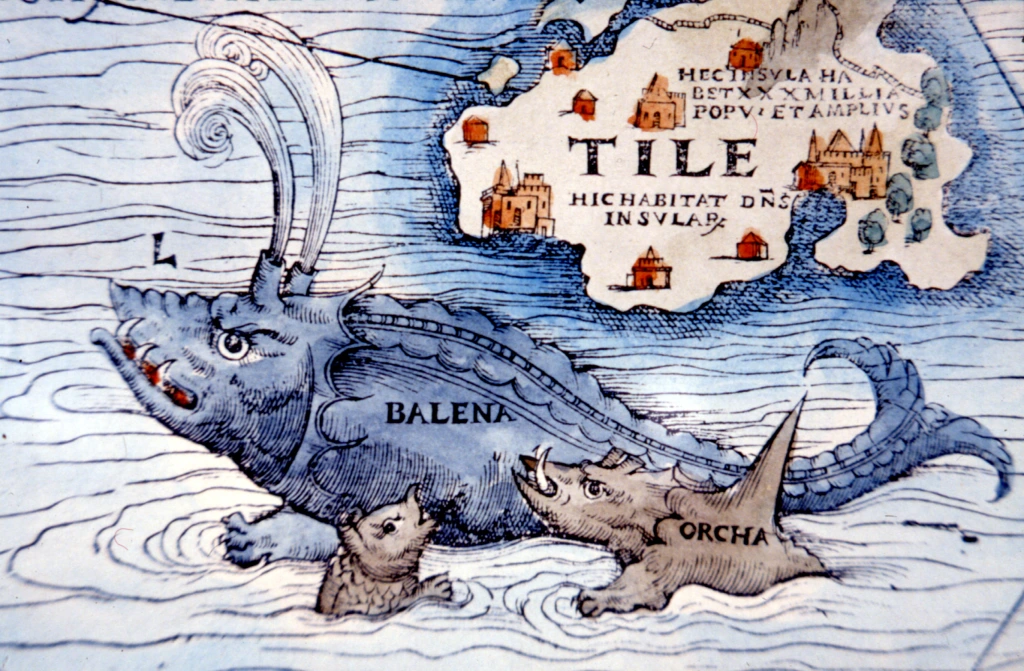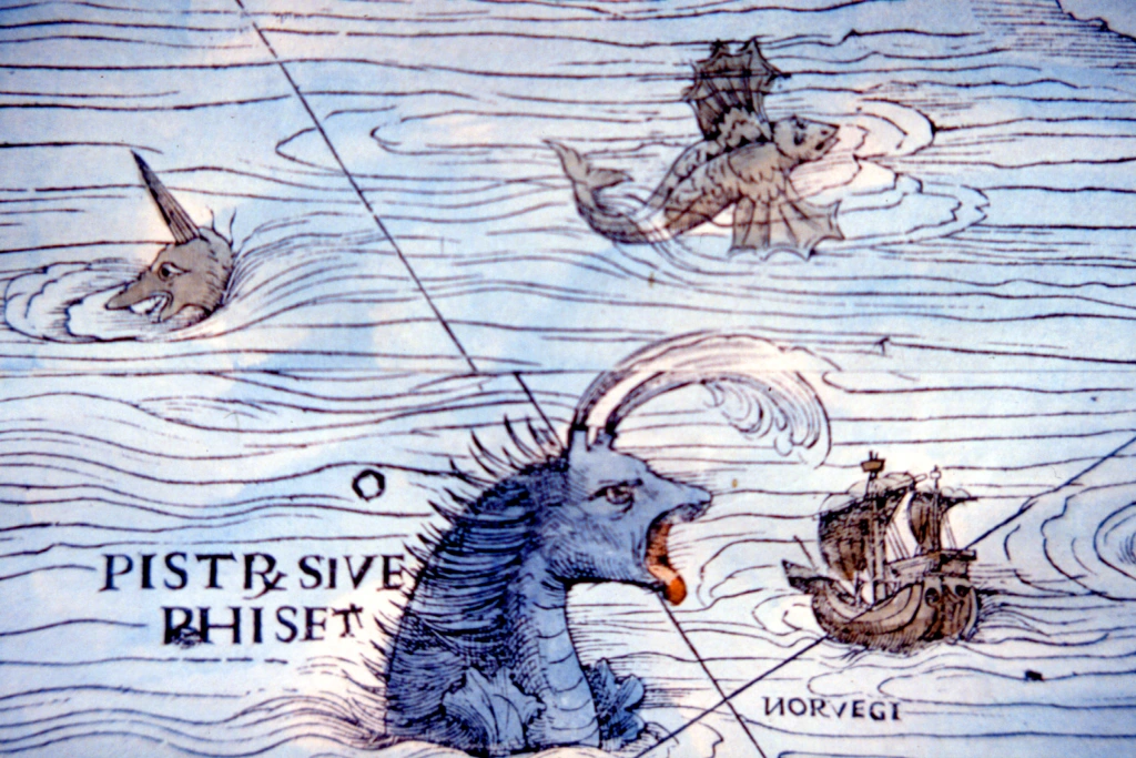 Olaus Magnus, autorul hărţii, a fost un preot catolic care, în contextul Reformei Protestante, a trăit mult timp în exil la Roma şi Veneţia. Departe de Suedia natală, el a adunat relatări ale navigatorilor, texte clasice şi legende locale, pe care le-a transpus în Carta Marina. Creaturile marine desenate pe hartă sunt însoţite de litere-cheie şi explicaţii plasate în colţul din stânga jos, transformând documentul într-o adevărată enciclopedie ilustrată a miturilor nordice.